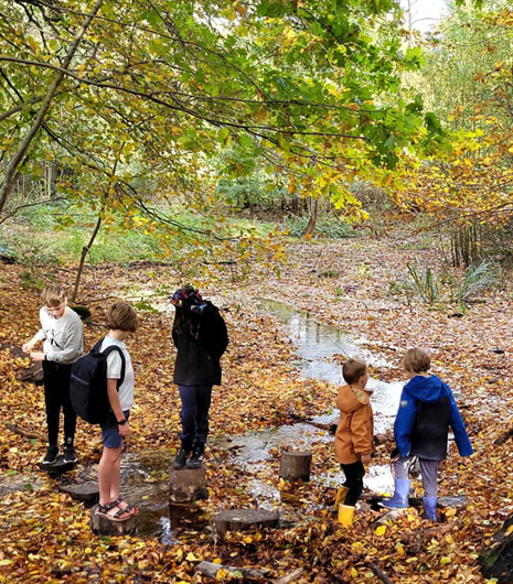 De kinderen zijn dagelijks buiten. Ze spelen vrij buiten, in een groene omgeving. Maar ook taal-, reken en bewegingslessen kunnen buiten plaatsvinden. Zorg dat je kind geschikte kleding draagt om onbezorgd vies te worden.